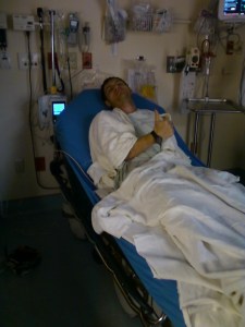 They took Alex back to a room, which happened to be a sailboat themed child’s room, got him into a hospital gown, and put an IV in him. Everyone was really nice.
