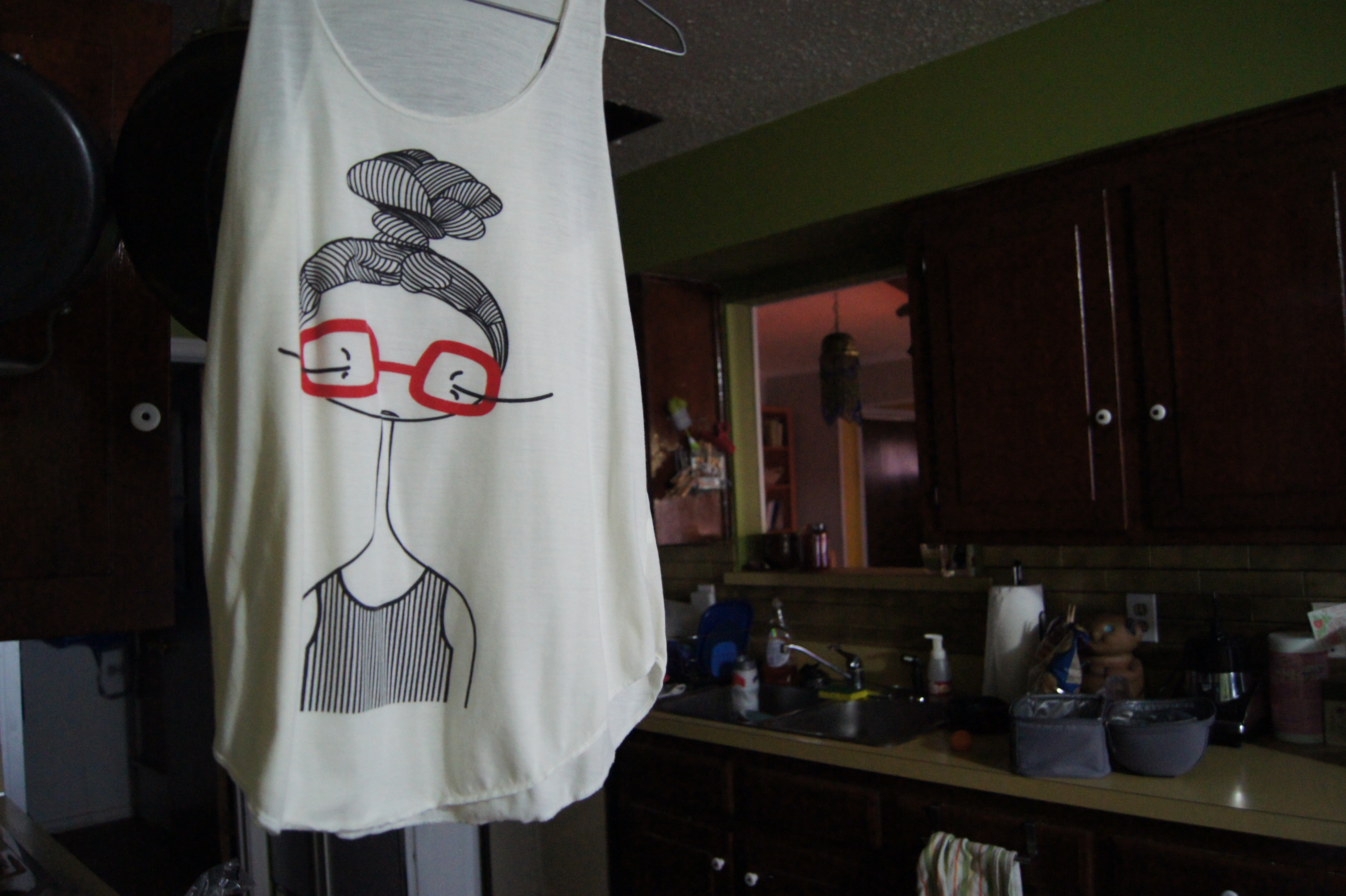 This t-shirt features a bored old lady. If you look at her face, it appears that she could not think of something more boring (stultifying?)than gracing the front of my clothing. I, personally, think that being an article of my clothing would be fascinating. You would get to experience all sorts of fascinating things- like being dried when your label explicitly says not to, or meeting a giant dollop of hummus at the beginning of a work day, or being worn inside out for half a day, or being paired with a pair of fabulously hideous pants. My clothes experience alot of love.