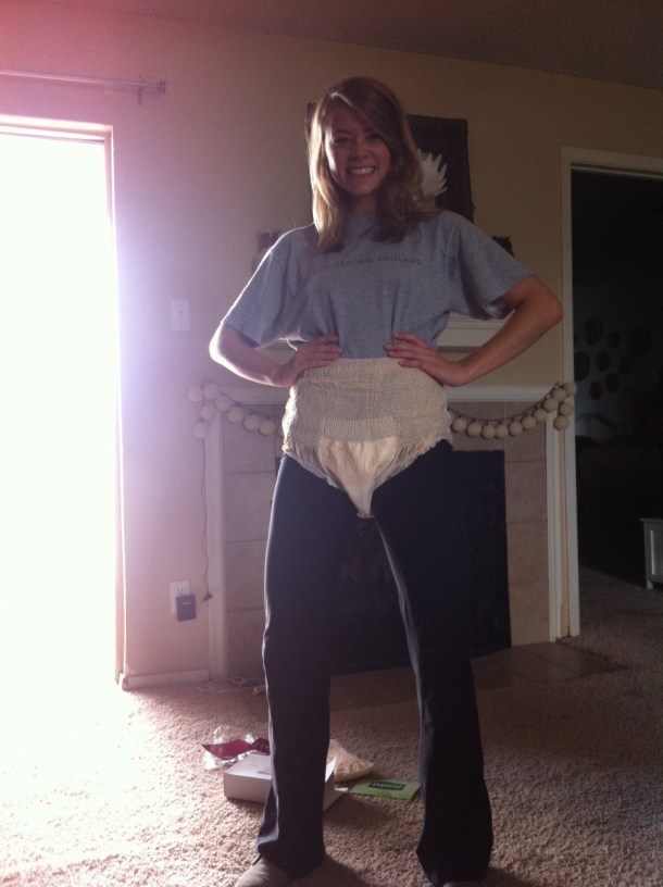 A week or so ago, I was flipping through the coupons and I stopped on a page advertising some very popular adult diapers, the name of which may or may not be in the title of this post. It said that you could request a free sample and whamo, I signed my little sister up for a free pair of XL diapers, complete with coupon book.