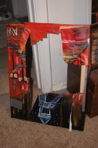 Battle #5: Alex and I were battered and bruised so we left the bedroom door open the next day and of course, the posterboard had been completely destroyed. We were not surprised.