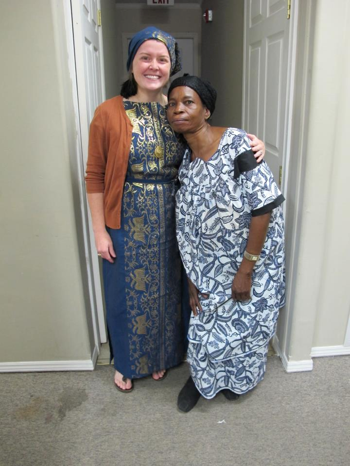 Most of the students thought it was cool that I dressed up but I was unprepared for the reactions of the African women. They thoroughly enjoyed my dress. One of them said that I was dressed up as a “beautiful woman”. I got to thinking about how much unwanted, traumatic transition they’ve experienced. Absolutely, most of them are incredibly thankful to be safe here in the US but everything is new here- new language, new culture, new food, new clothing, new mannerisms, new streets, new family structures, new careers, too much new. So they grasp frantically at anything familiar, even if it’s a crazy white lady wearing a dress that is faintly remniscent of their country on a holiday that means nothing to them.