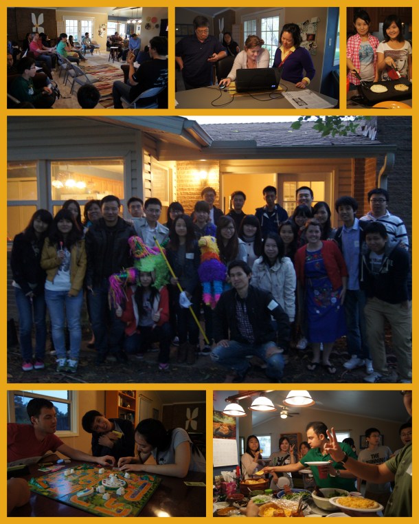 Alex and I love hosting things- parties, dinners, movie nights, game nights, Bible studies, sleepy Korean students. We routinely (at least once a week) have people in our home. Just this week, we had a Halloween party on Wednesday, Tearjerker movie night on Friday, and a Bible study on Saturday.  During each gathering, I try to stop being hostess for a moment and take in all of the wonderful things that are happening in our home. I try to stop and take a mental picture of all the fun that is being had and I take a moment to give thanks to God for blessing us with a house where we can create memories like this.