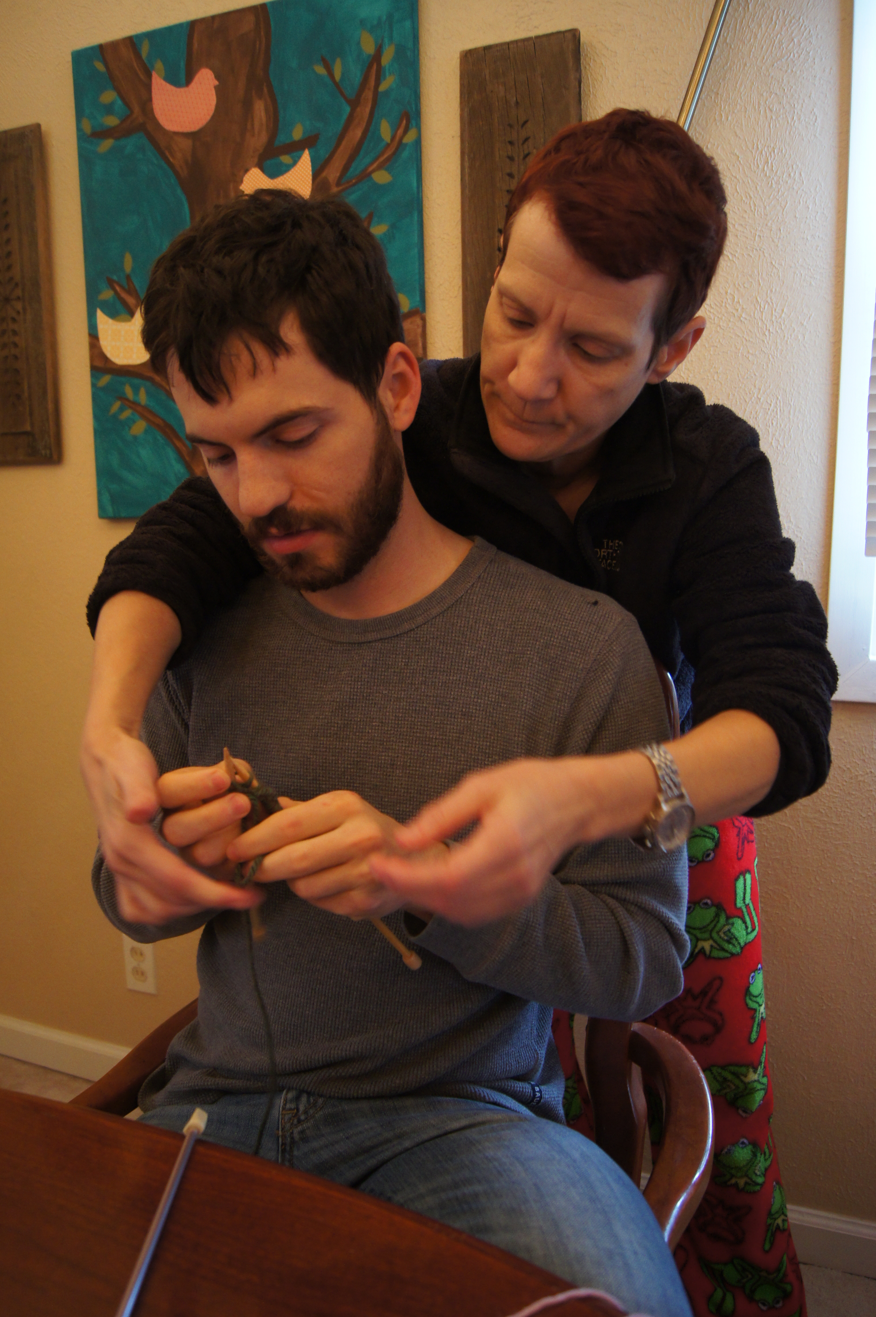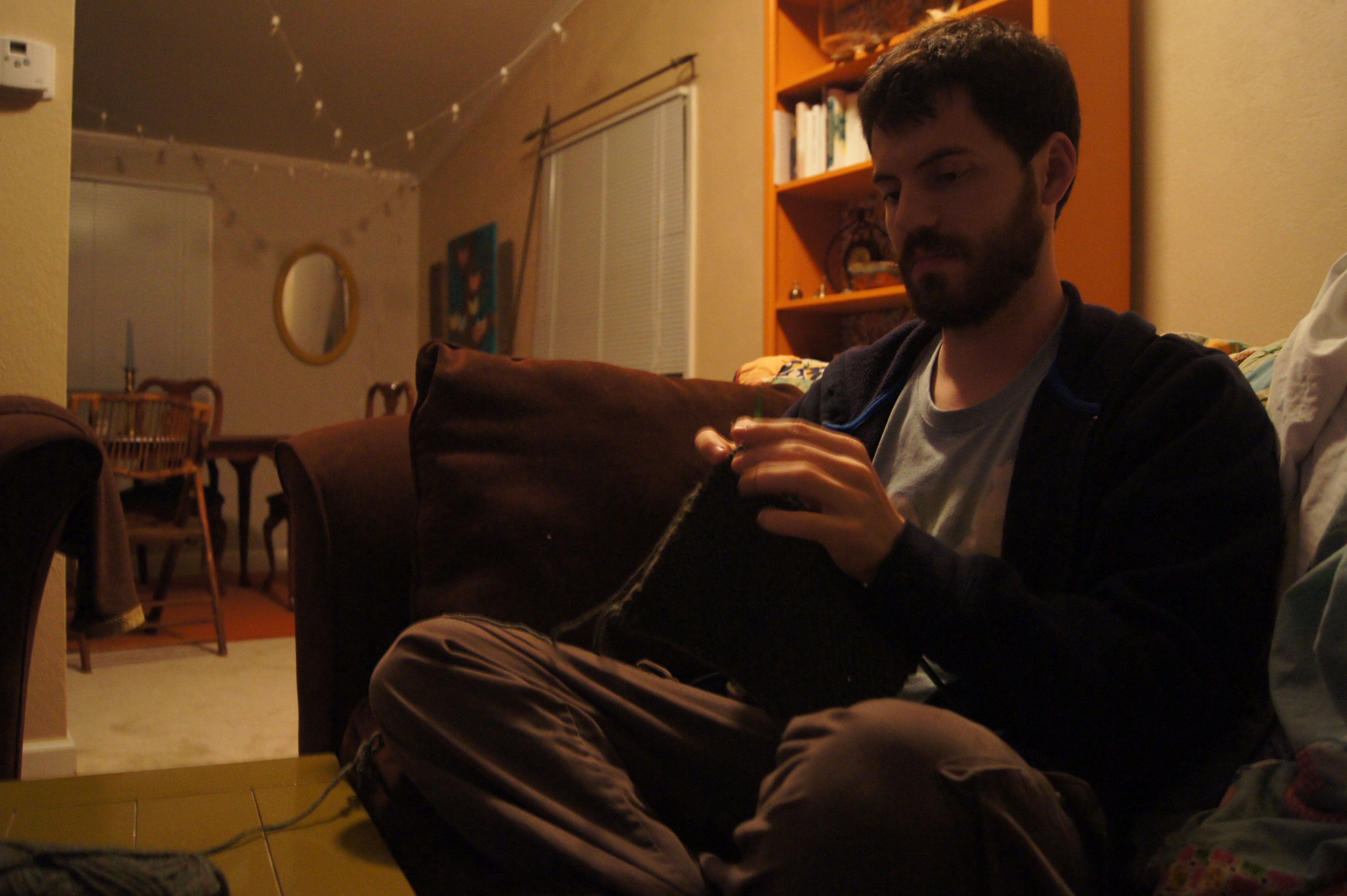 Alex surprised the heck outta me when he said, “I’m gonna learn how to knit”. I mean, it didn’t REALLY surprise me, once I thought about it, since my husband enjoys learning how to build fires and sleep outside without a tent. I knew almost immediately that he wanted to knit himself a sweater…and wool socks…and some underwear.